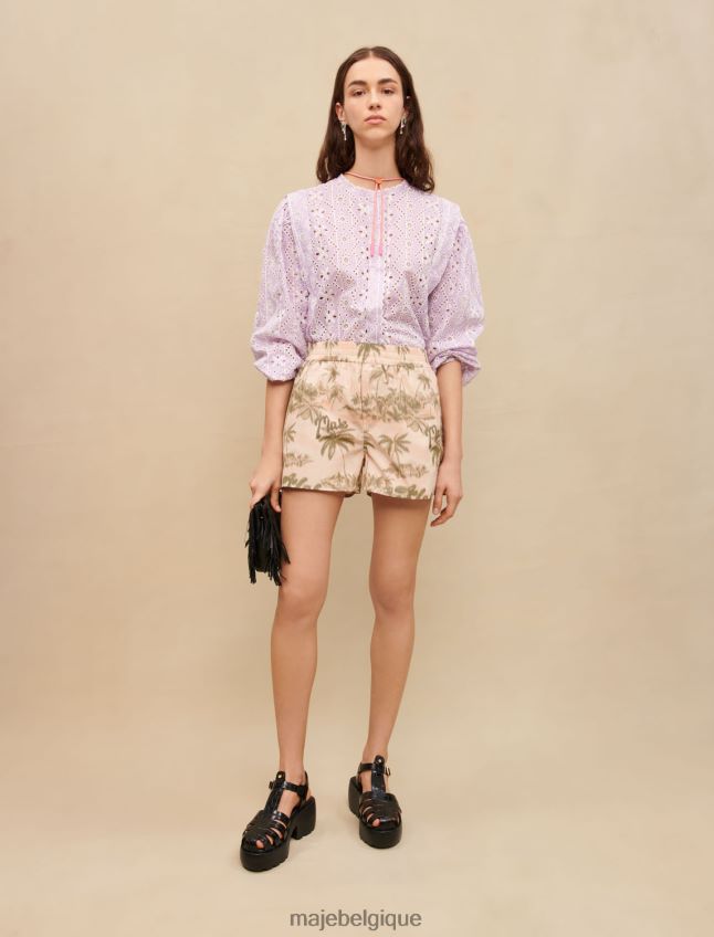 cette saison, maje revisite le motif palmier avec une touche estivale et folk. ce short surdimensionné comporte deux poches et injecte un peu de fun dans les looks.