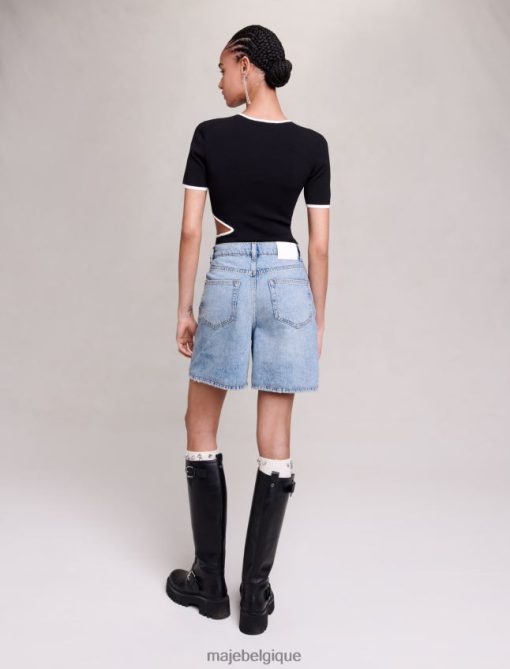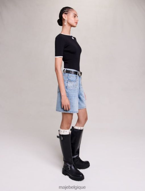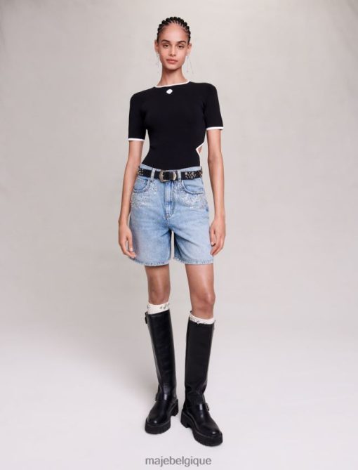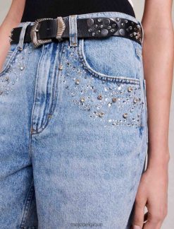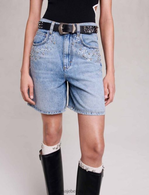 Maje femmes short en jean évasé avec strass 288PF092 vêtements bleu