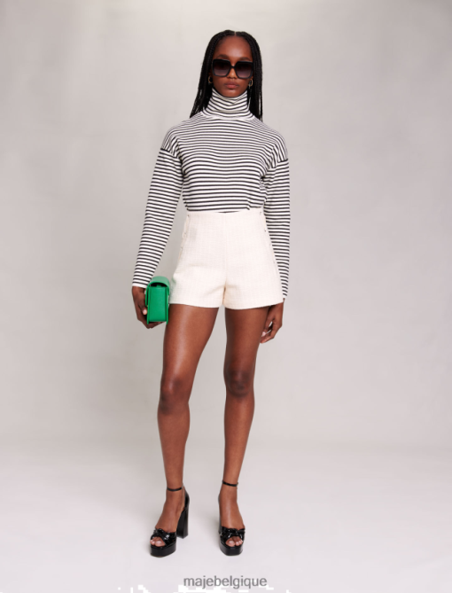 plongez en profondeur dans le monde vibrant de notre nouvelle collection, créée avec passion par notre studio de design. cette saison, nous célébrons la fille urbaine, en rehaussant les incontournables de la garde-robe avec des détails audacieux et des réinterprétations inspirantes. Ce short en tweed subtilement évasé présente une taille mi-haute, un laçage en ruban gros-grain sur les côtés et une fermeture zippée au dos. jouez avec les contrastes en ajoutant un haut rayé bicolore et des accessoires colorés comme un sac signature et des talons vertigineux.