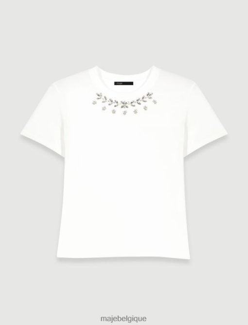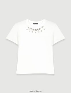 Maje femmes T-shirt 100% coton avec strass 288PF034 vêtements blanc