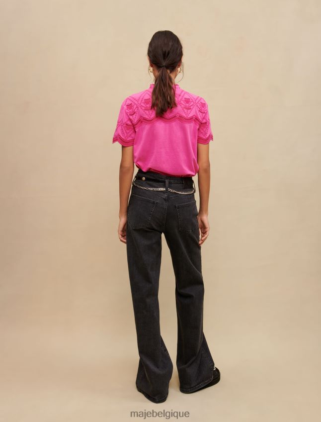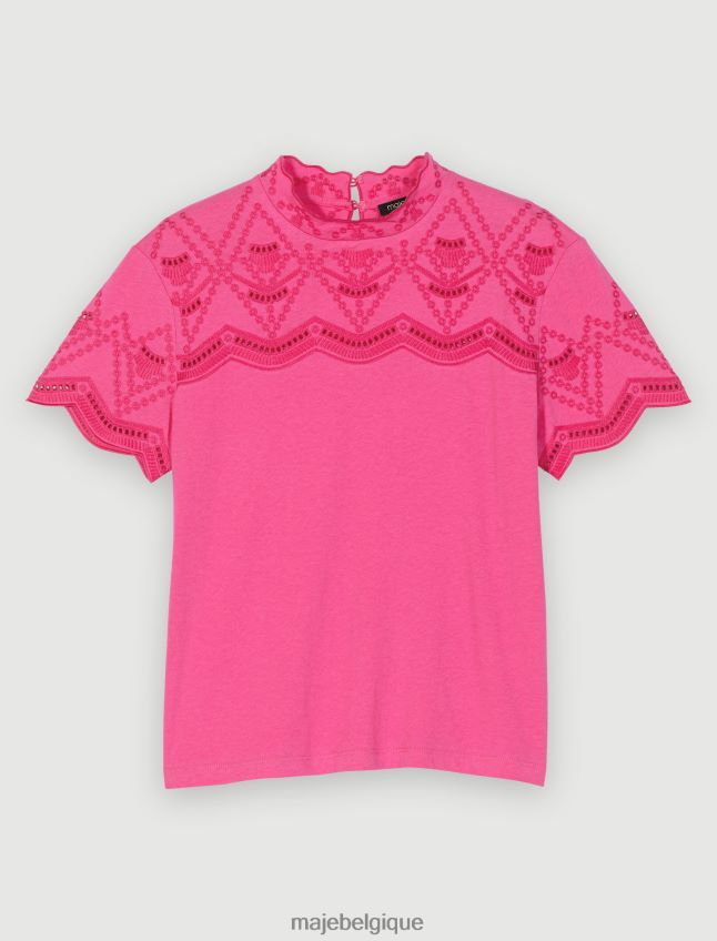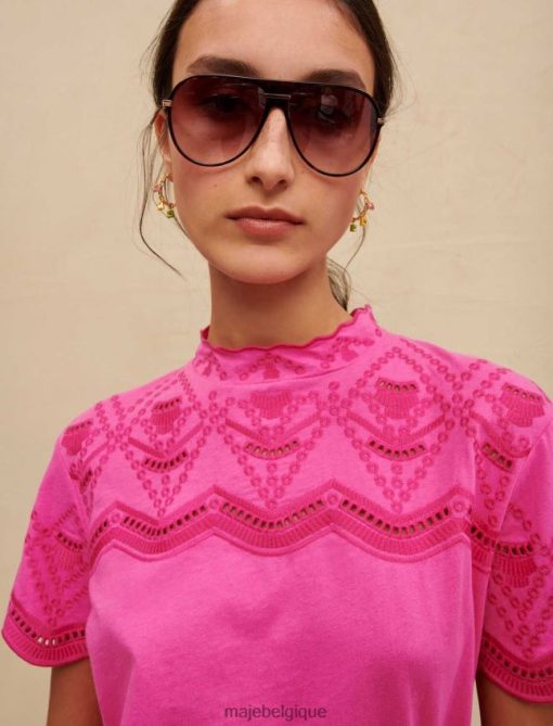 Maje femmes t-shirt brodé 288PF0308 vêtements fuchsia