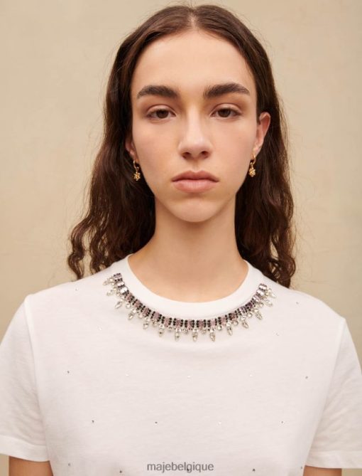 Maje femmes t-shirt en jersey avec strass 288PF0144 vêtements blanc