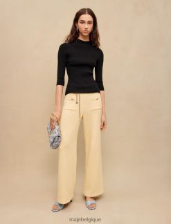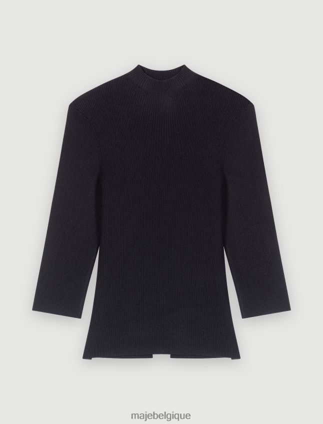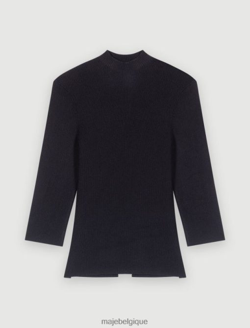 ce haut côtelé noir est un classique du dressing féminin. il laisse entrevoir la peau nue au dos, où il est agrémenté d’une fente biseautée ornée de trois attaches majes trèfles. un détail subtil qui fait ressortir le style.