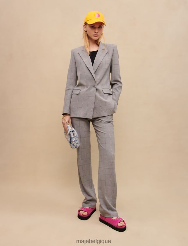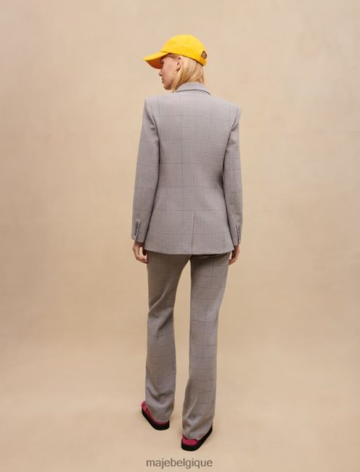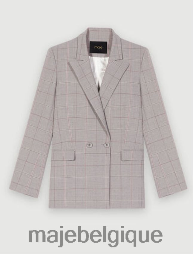 cette veste de tailleur à double boutonnage est cette saison dans un coloris à carreaux gris. le tissu contient de la laine, ce qui le rend chaud et idéal pour la mi-saison. la doublure présente le logo maje trèfle. il est polyvalent et s’accordera parfaitement avec les pièces de votre garde-robe.