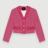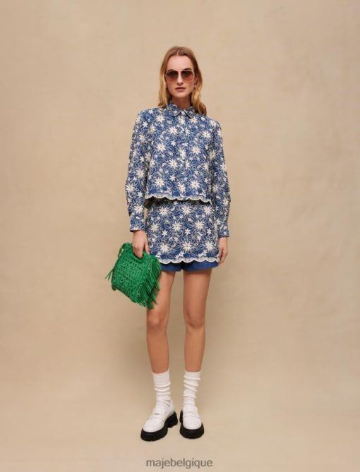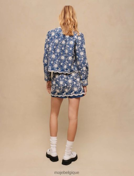 le vestiaire maje accueille le printemps avec cette veste courte ornée de broderies florales all-over. Doté de manches longues et d’une fermeture boutonnée, il est festonné dans le bas et possède une poche plaquée sur la poitrine. ce modèle rafraîchissant peut être porté avec la jupe assortie ou mixé avec un pantalon coloré.