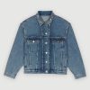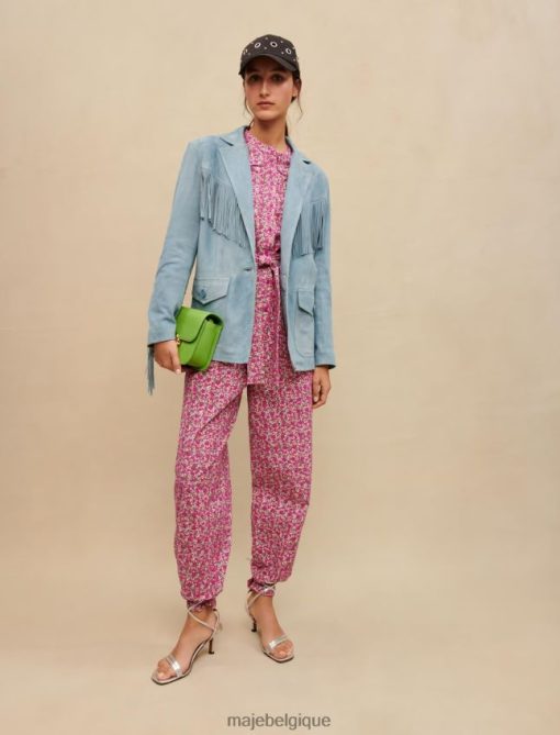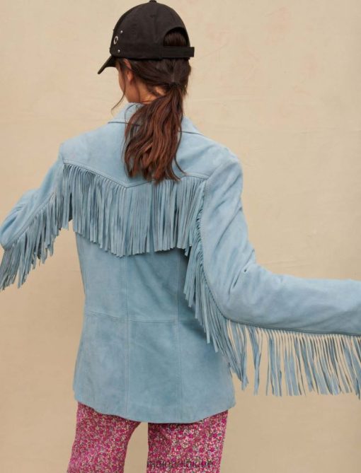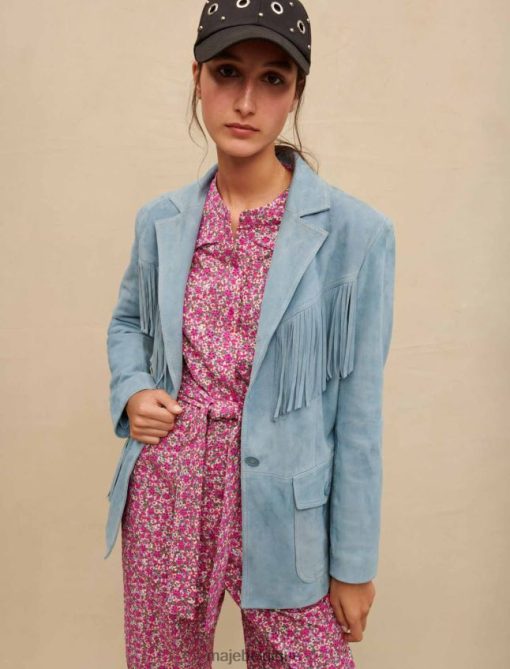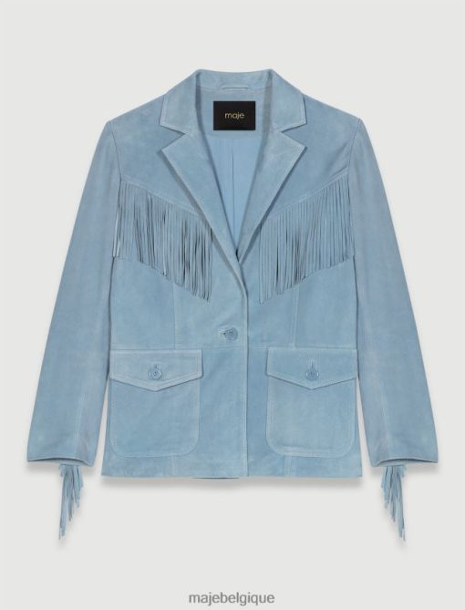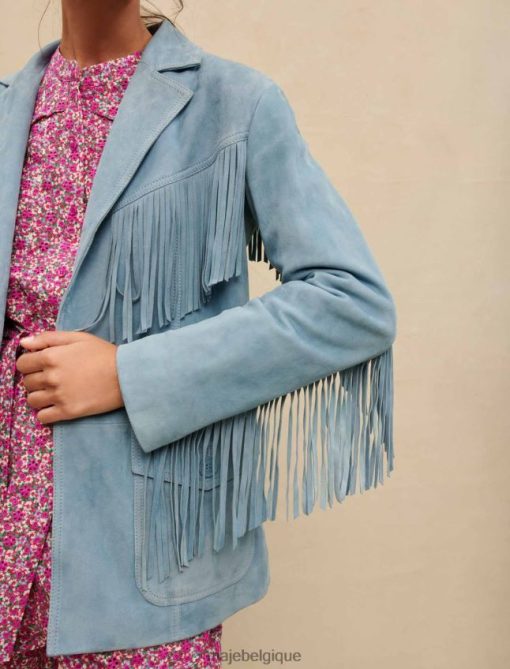 Maje femmes veste en cuir suédé avec franges 288PF0329 vêtements bleu