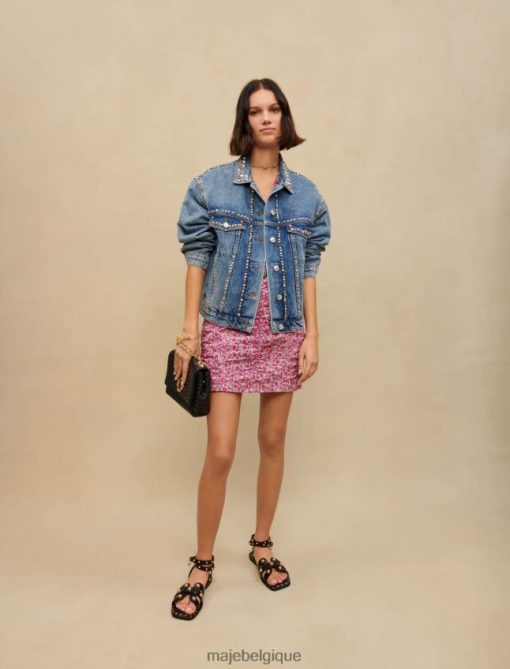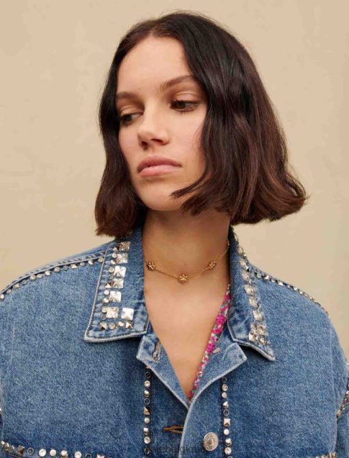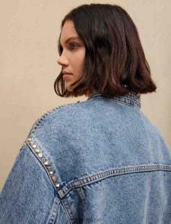 cette saison, l’intemporelle veste en jean se décline dans une version délavée, agrémentée de rivets et de cristaux sur le col. cette veste en jean a des manches longues, une fermeture boutonnée et des poches à rabat sur la poitrine. sa forme oversize redéfinit le volume de votre silhouette et apporte une touche casual chic à vos looks printaniers et estivaux.